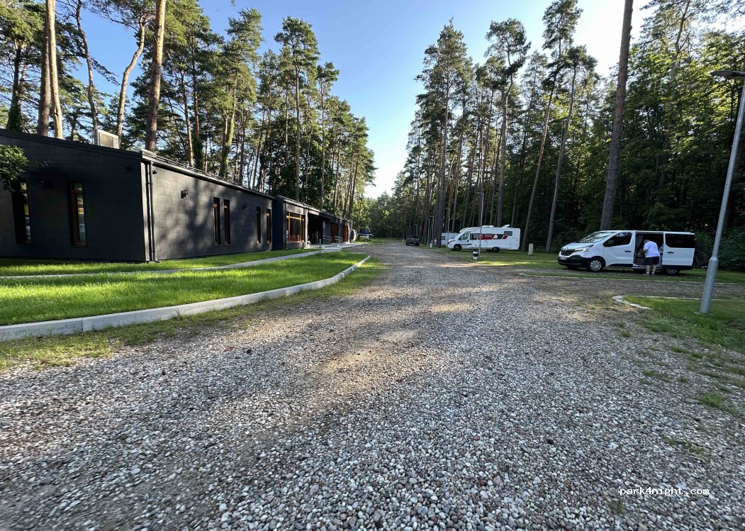 Unser WAZE hatte uns fälschlicherweise von der Rückseite an den Campingplatz geführt. Orientiert Euch an den Restaurants. Super für Hunde - hat einen riesigen Wald mit vielen Wegen. Alles NEU und modern. Freundlicher Empfang und gutes Essen im kleinen Litauischen Restaurant (den Grill haben wir leider nicht ausprobiert).