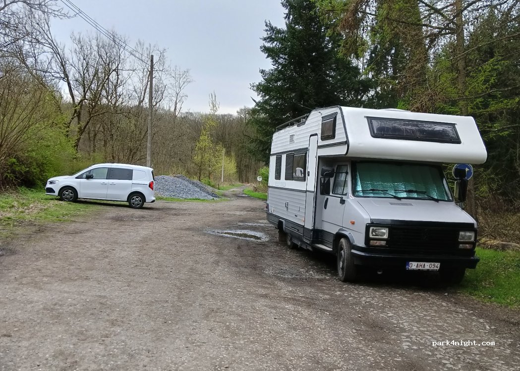 Deze kleine parkeerplaats is het startpunt voor wandelingen in de bossen van Mariemont en L'olive (de plaats waar deze locatie zich bevindt). de eigenaren van de petanquebaan "Olive" aan de overkant verzekerden mij dat ze zich er niet mee zouden bemoeien en 'als het niet expliciet verboden is, is het wel toegestaan'.