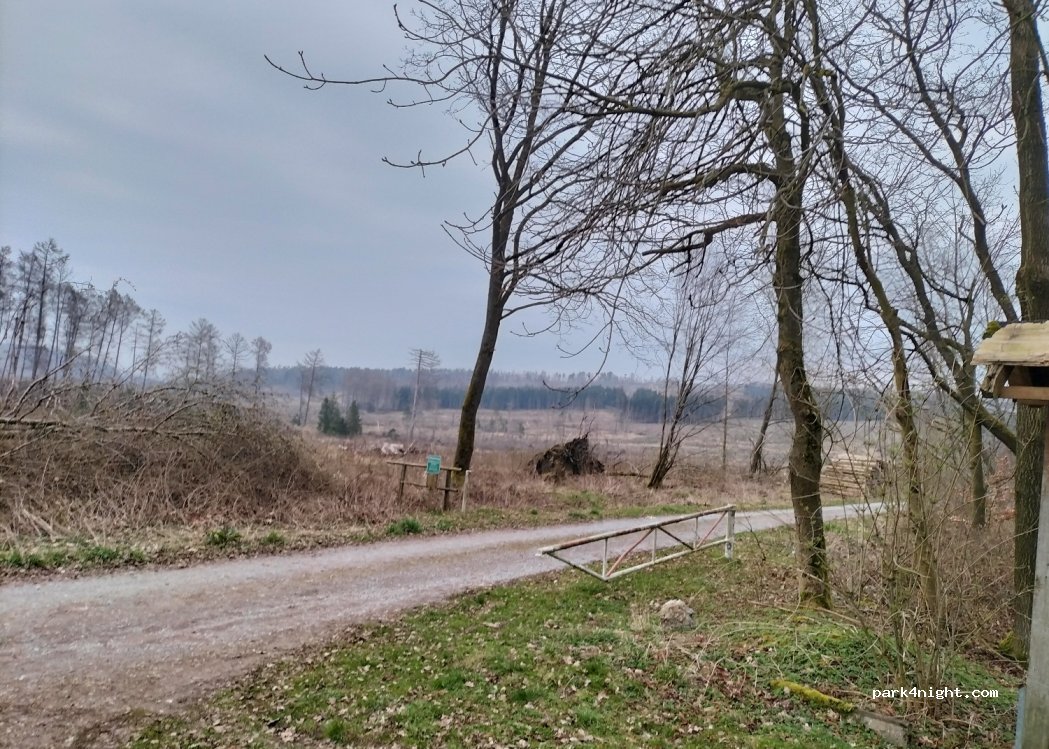 Einfacher Wanderparkplatz ohne irgend welchen Luxus wie WC oder Mülleimer. Der Parkplatz ist geschottert, leicht schräg und nur bedingt für größere Fahrzeuge geeignet. Die vorbei führende Straße ist Abends kaum befahren. Vom Fahrzeug aus blickt man auf ein Tal welches nach dem Fichten sterben von der Natur zurück erobert wird.