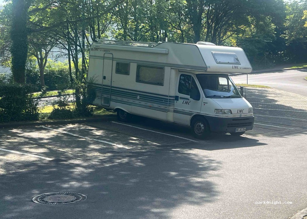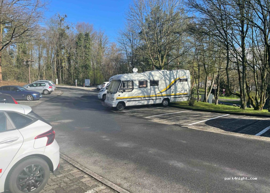 Nous avons passé la journée ici sur le parking des thermes Kurhessen. Nous avons également visité les thermes pendant la journée. Cependant, pour notre longueur de 7,5 m, seules trois places de stationnement possibles conviennent et elles sont également un peu inclinées.