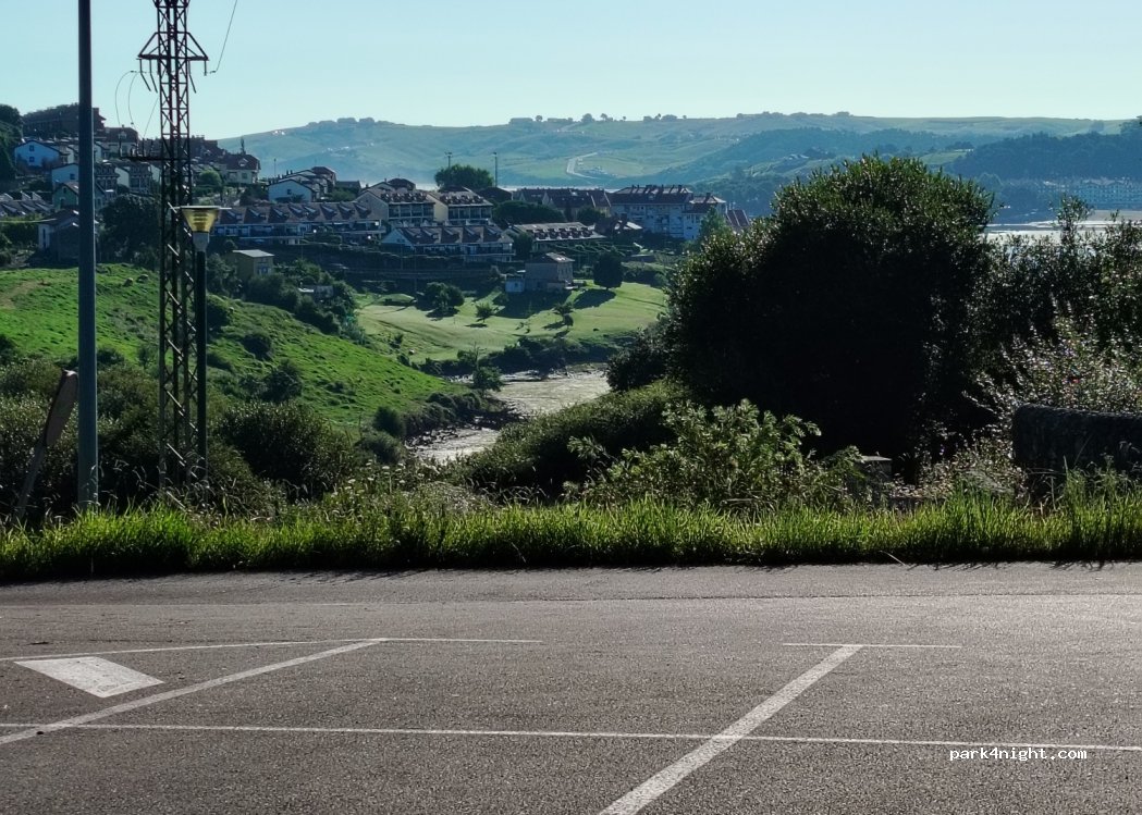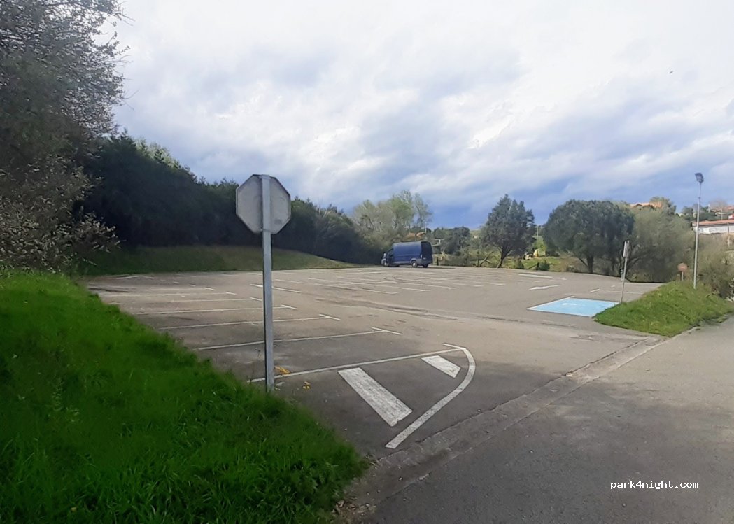 Aparcamiento asfaltado pero inclinado, requiere poner unos buenos calzos. Solo para Pernoctar ya que de día se llena de coches. Los alrededores están llenos de papeles y otros desperdicios de campistas poco o nada respetuosos. Sitio tranquilo, seguro y sin problema de pernocta.