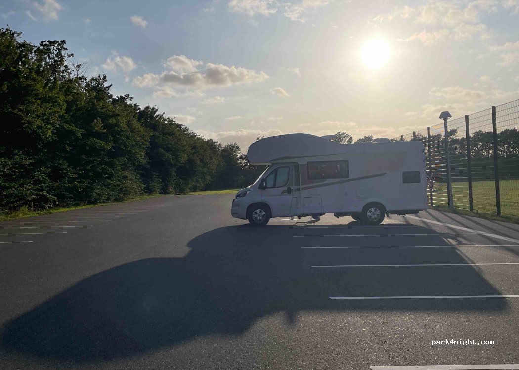 wij hebben hier overnacht voor de ferry naar zweden van zaterdag op zondag. de parking was leeg, we waren alleen en de nacht was waanzinnig stil! de plaats is redelijk recht/vlak (achteraan). echt een aanrader als tussenstop naar de boot. het is bij een sportvereniging dus in het seizoen zal je hier vermoedelijk niet kunnen staan uit respect voor de locals!