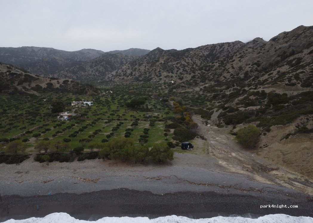 Platz am Meer, Weg nach unten ist nicht gemacht, also je nach Wetter benötigt man 4x4 (vor allem für den Aufstieg, da z.T. sehr Steil). Unten hat es eine Taverne die in der Hauptsaison offen hat. Dort gibt es Wlan, Toiletten und Duschen. Bei uns war alles zu und kein Mensch dort