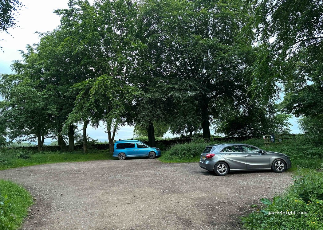 Lovely dog walk in the woods. Small car park. Sign at entrance prohibiting overnight stays.