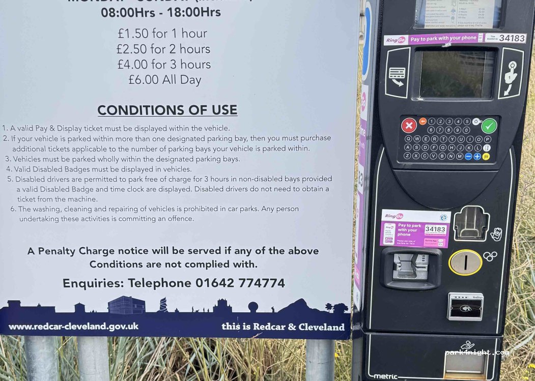 I arrived and the machines don't work then a man told me that I could park across the road in the car park for what was a Youth Zone for free. Later I spoke to a security guard about if I can stay over night and he said that can't see why not as there are no signs saying you can't, so I did. I only gave it 3 starts due to the racing cars and bikes most of the night so won't be stopping here again