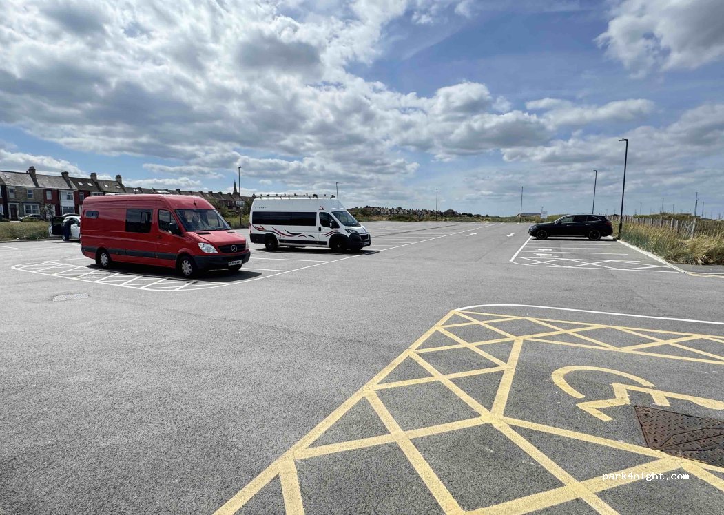 Great carpark. Not far from the sea front, kids park straight over the road. fish and chip shop over the field behind and walking distance along the road to amusements, fish and chip shops, ice cream, cinema etc. stayed one night, no issue.