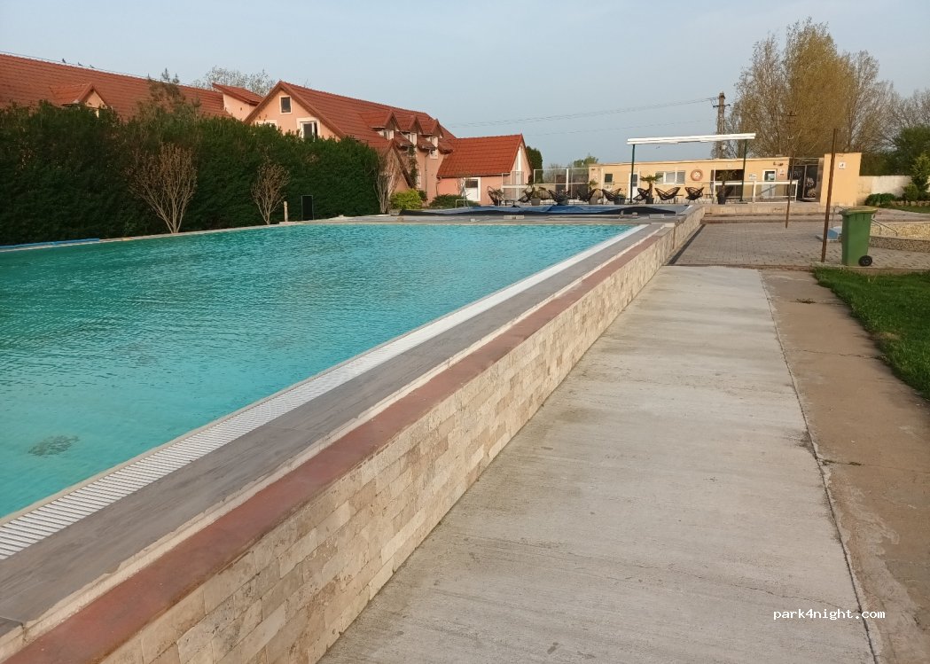 Loc ideal pentru offcamping, la 30 de metri față de intrarea în ștrand. Printre copaci, lângă o baltă care este o veritabilă scenă de concert unde performează o multitudine de vietăți. Ștrandul are apă termală, apă sărată, apă dulce, dușuri cu apă termală și apă rece, mai nou și saună, sală pentru servirea mesei și bar, locuri de cazare la pensiune. Gazdele sunt foarte prietenoase.