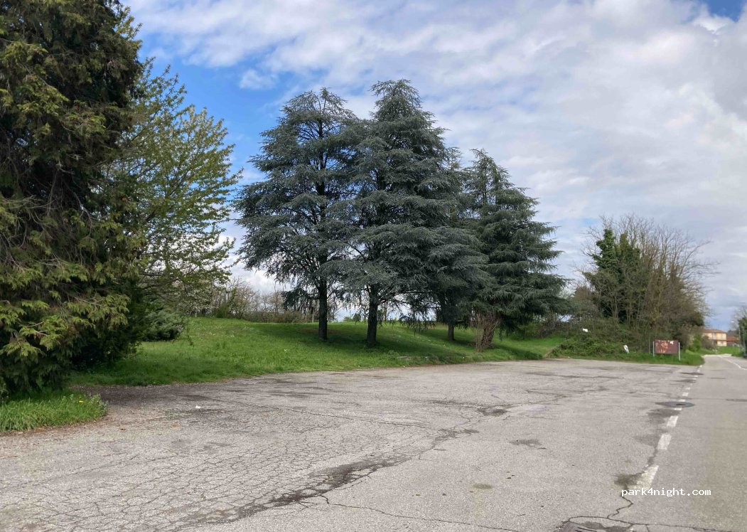 Piazzale molto ampio lungo la strada che porta in centro al paese. A pochi passi a piedi, meno di 1 km. Si possono trovare negozi, bar e servizi. Il piazzale è adiacente terreno erboso libero, c’è posto per una decina di camper.