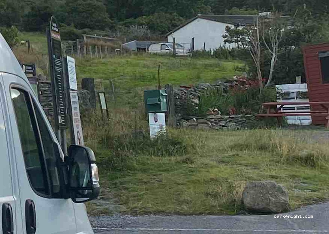 Great spot with view of the mountains - perfect place to start your hike. Silent at night but for the sheep. Warning that this place is marked incorrectly as it has no facilities. You need to go to the other car park for the shop and shower! Great view in the morning, though.