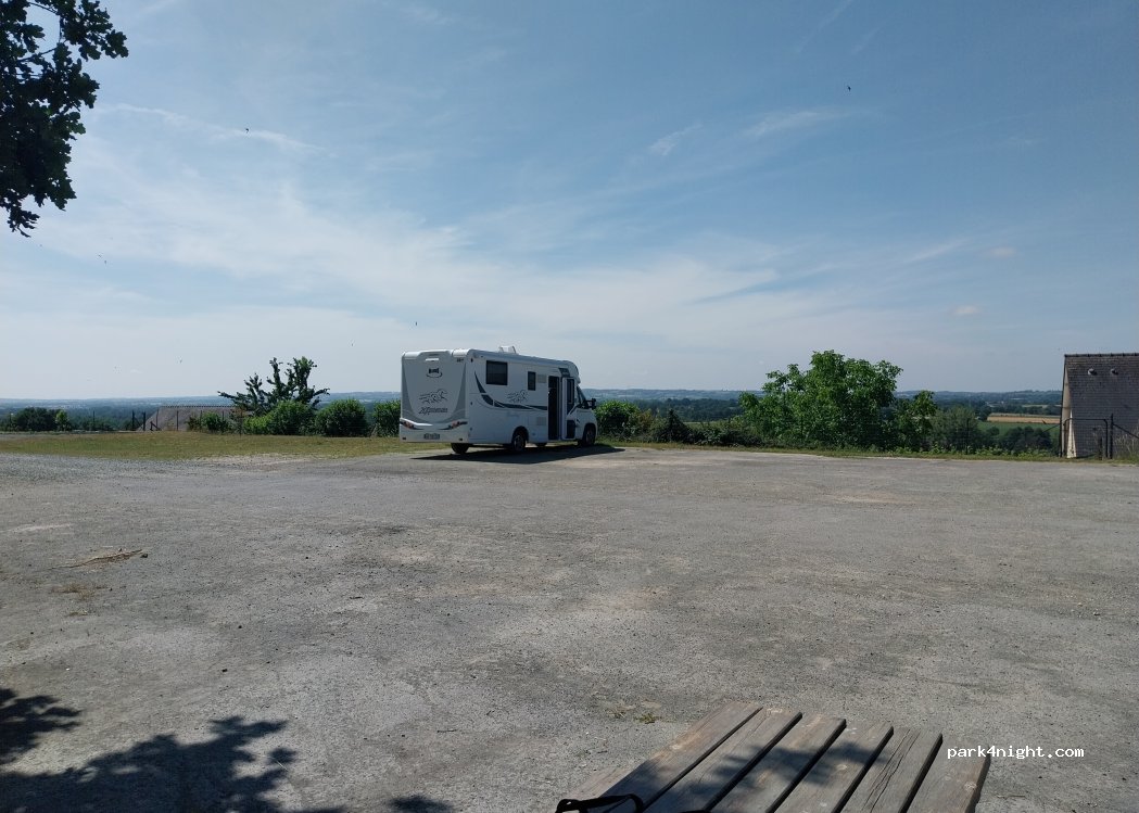 très bon stop au calme sur les hauteurs avec vue panoramique sur la campagne. poubelles à disposition. stationnement stabilisé