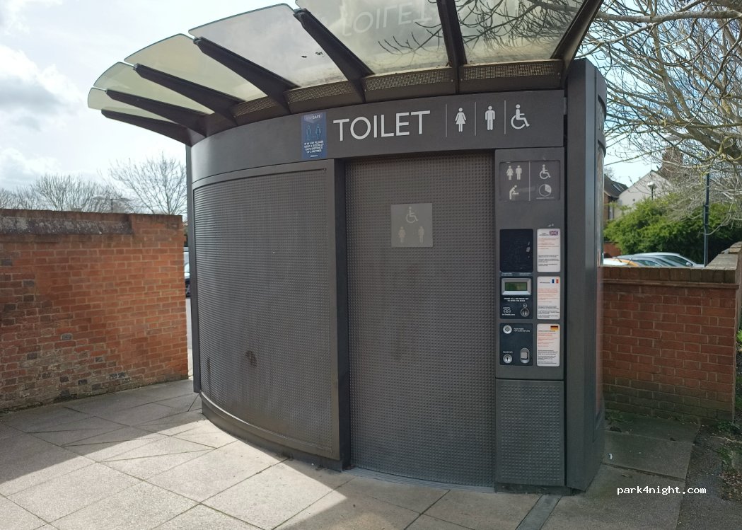 Public 24 hour toilet, 10p coin required or radar key.