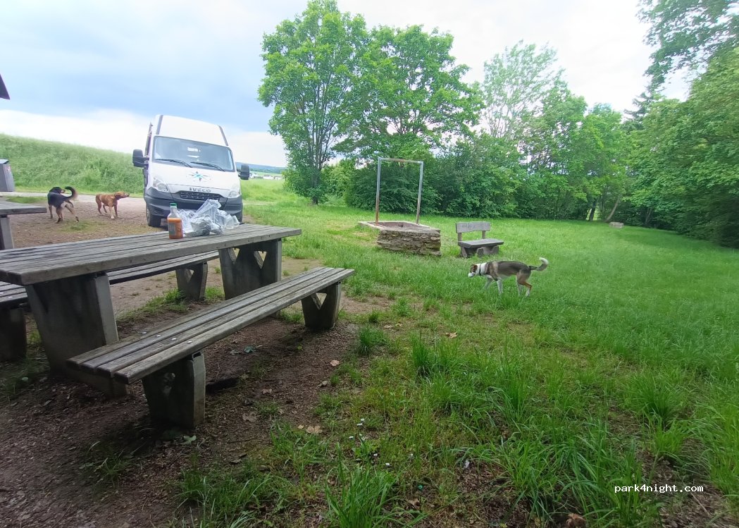 Kostenlos mit Toilette und ruhiger Umgebung. Direkt vor Ort eine Picknickbank. Schöner Blick über das Tal.