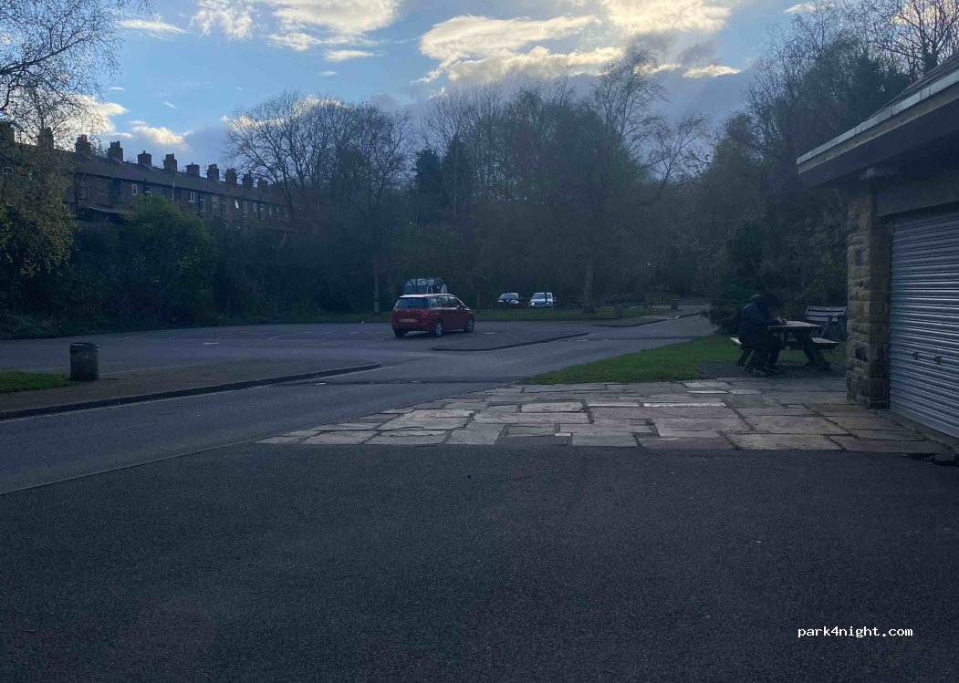 Large car park surrounded by trees. We arrived at 10pm on a Thursday night, it was very quiet and we had a peaceful night before leaving at 8am the following morning.
