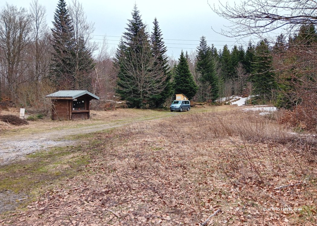 Beautiful esplanade at the start of a cross-country ski trail, rather sheltered from the wind, quiet, access via 2 small, short semi-tarmac trails, rather for vans.