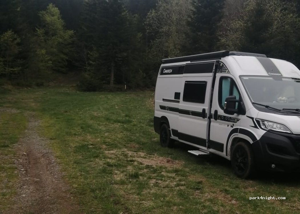 Belle esplanade au niveau d'un départ piste ski fond,plutôt abritée du vent,calme,accès par 2 petites pistes semi goudronnées courtes plutôt pour van.