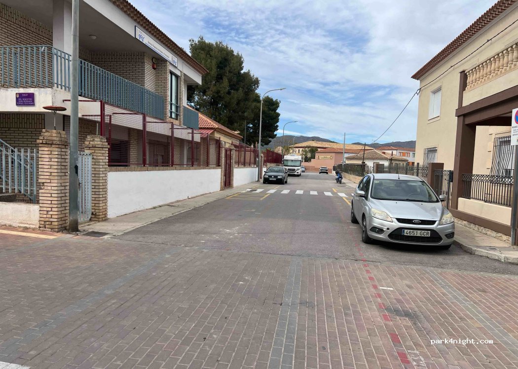 Aparcamiento en linea, al lado de un colegio. Cumple su misión, para visitar el pueblo.