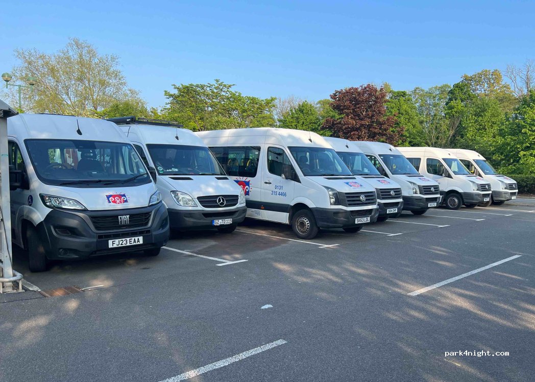 Super Parkplatz, um Edinburgh umsonst erkunden zu können. Wir haben im vorderen Bereich bei den Minibussen einer Organisation geparkt. Später kamen noch ein paar Camper dazu. Der Parkplatz ist rießig, man kann einfach zwei hintereinandergelegene Stellplätze nehmen, wenn man mit einem größeren Van unterwegs ist. Entweder Spaziergang (ca 40 Min) in die Stadt oder Buslinie 27 (2£ einfache Fahrt).