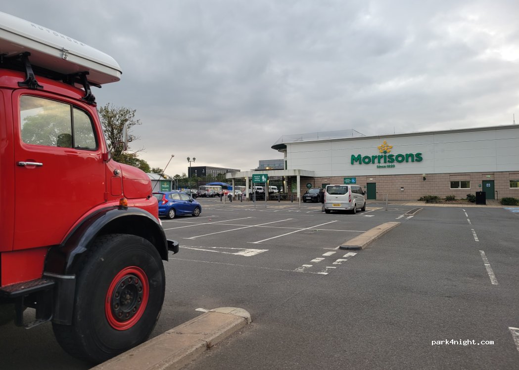 Wir standen vier Nächte am Morrisons mit wenigen Nächten Unterbrechung. Klasse Übernachtungsmöglichkeit. Wir fragten sogar extra drinnen ob wir dort stehen dürften. Nachts sogar relativ ruhig. Mülleimer gegenüber am der Bushaltestelle. Mit dem Bus kann man in rund 20-25 Minuten nach Edinburgh Zentrum reinfahren. Sehr zu empfehlen!