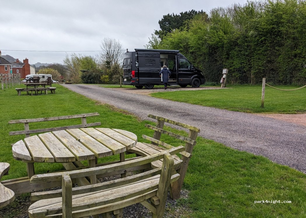 8 plot hardstanding site with EHU, (day rate or metered), 2 shower / toilets.