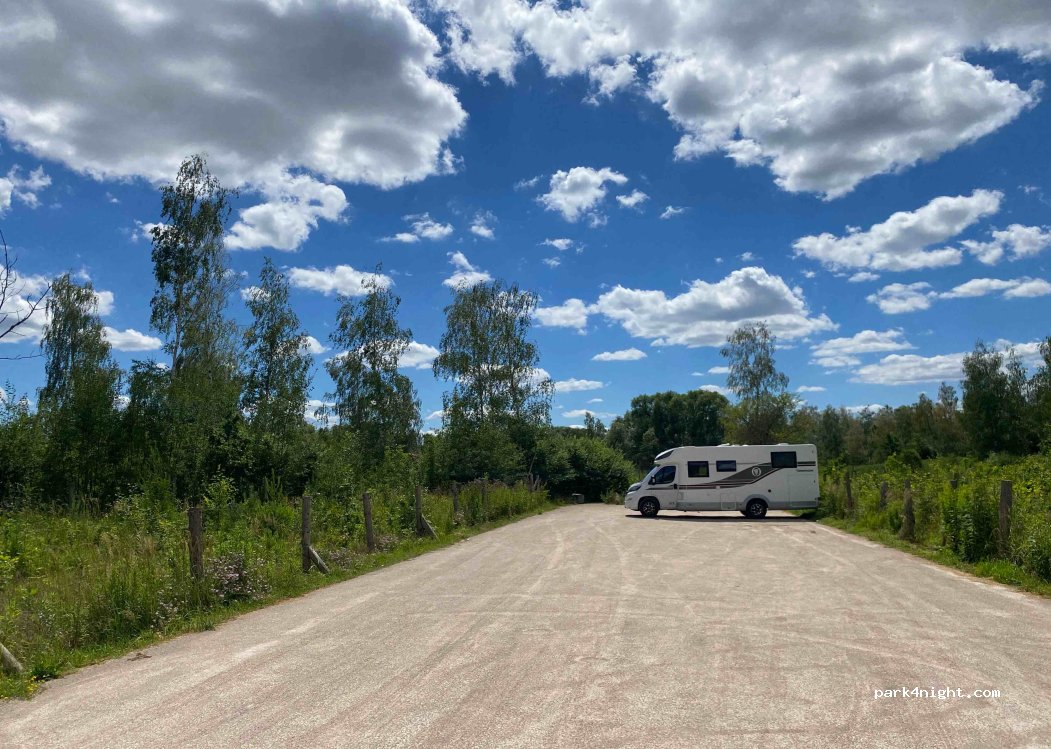 A small parking lot in front of a beautiful park. Spending the night there is no problem, the street next door is a bit noisy but is very quiet overnight. Occasionally there are visitors who walk their dogs in the park next door. The center of Prague can be reached in 25 minutes.