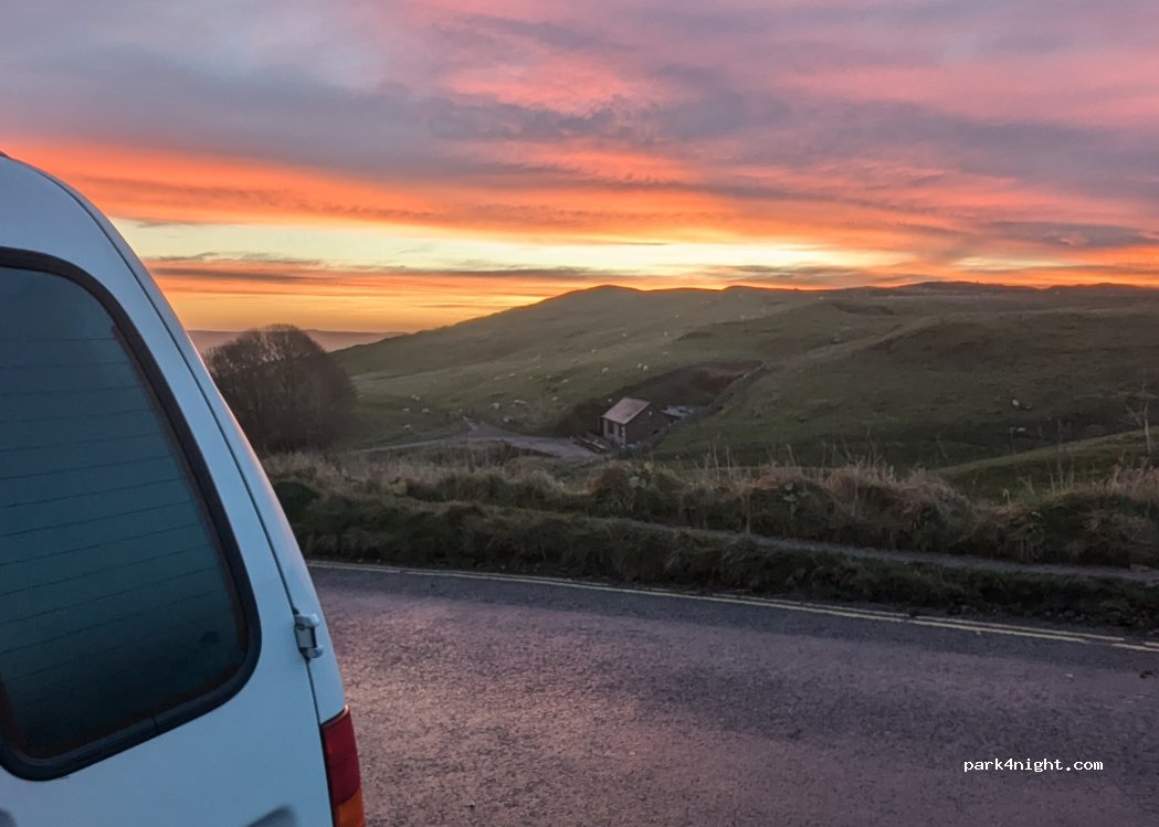 Great spot to park, though unlevel, quiet and great views! easy access to the hill footpaths.