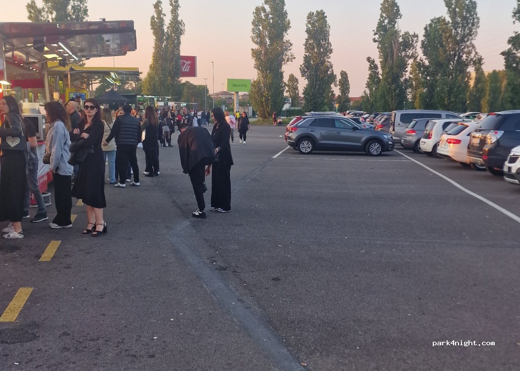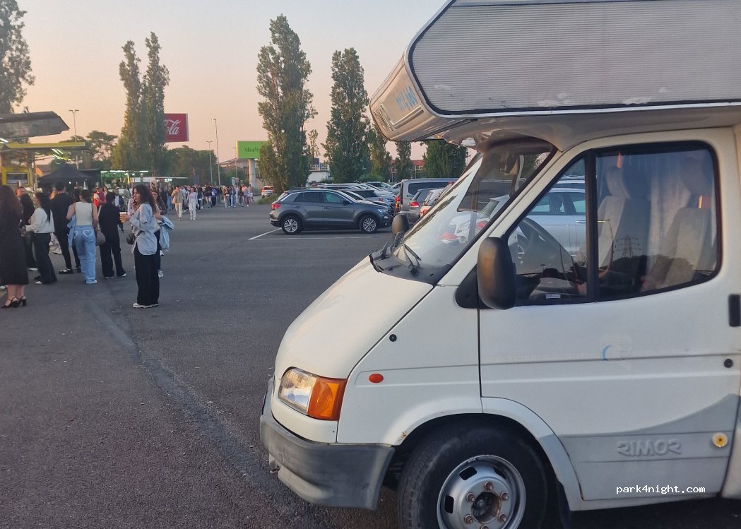 comodissimo per gli eventi al forum di assago però il problema e che per i camper chiude alle due quindi per chi vuole dormire e partire il mattino dopo e un problema è poi 12€ mi sembra un po troppo