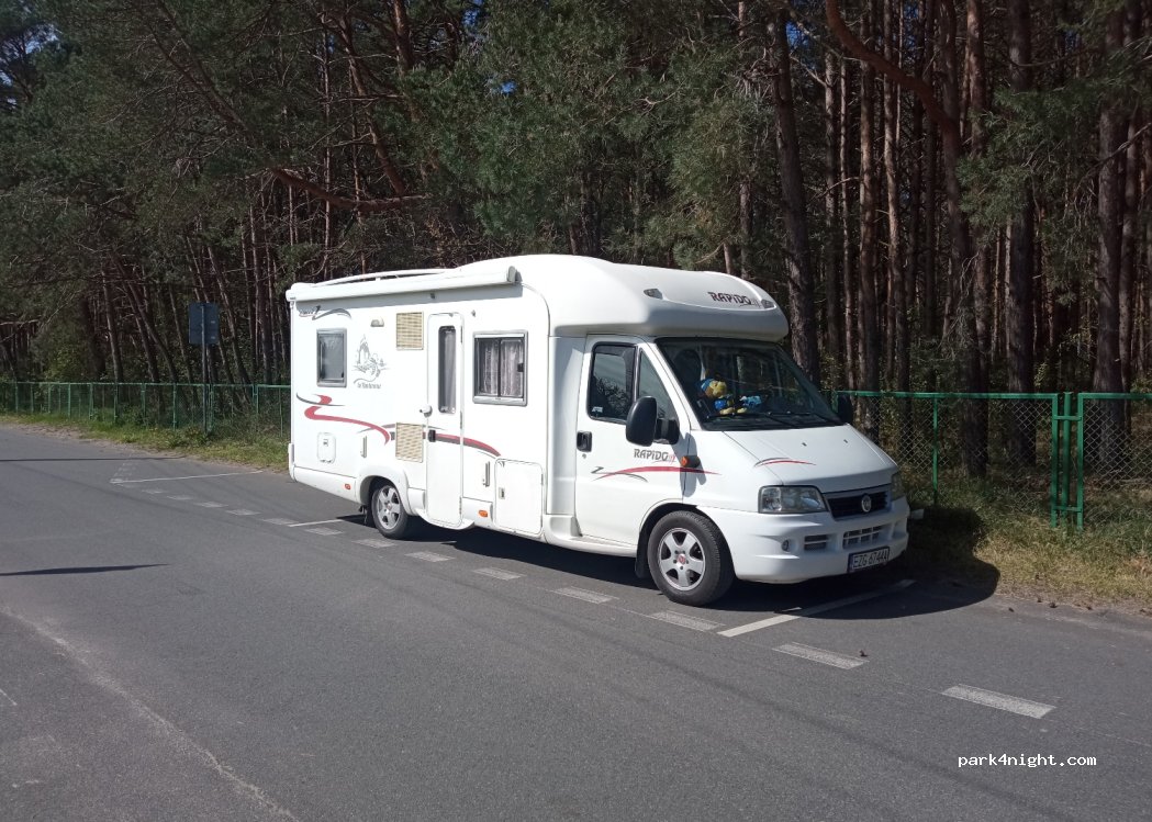 Parkplätze in der Leśna-Straße, entlang des Strandes, Möglichkeit, Wohnmobile in der Nebensaison kostenlos abzustellen. Manchmal fährt ein Auto zum Strand vorbei, 100 m in der Nähe des Restaurants