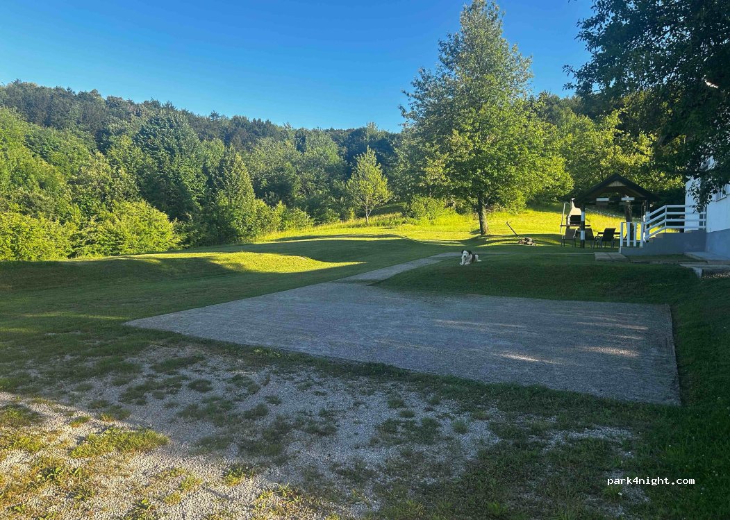 Emplacement non définie mais plutot ombragé. Le propriétaire est très gentil. L’hôte ne parle que Croate mais on arrive à se faire comprendre. Une seule douche et toilette dans la même pièce. Sa bouchonne un peu. Idéal pour 1 nuit ou 2 pour visiter les lacs de Plitvice. Électricité sans supplément. Petite cuisine et coin salon mis à disposition. Vidange eau noir possible dans un puisard.