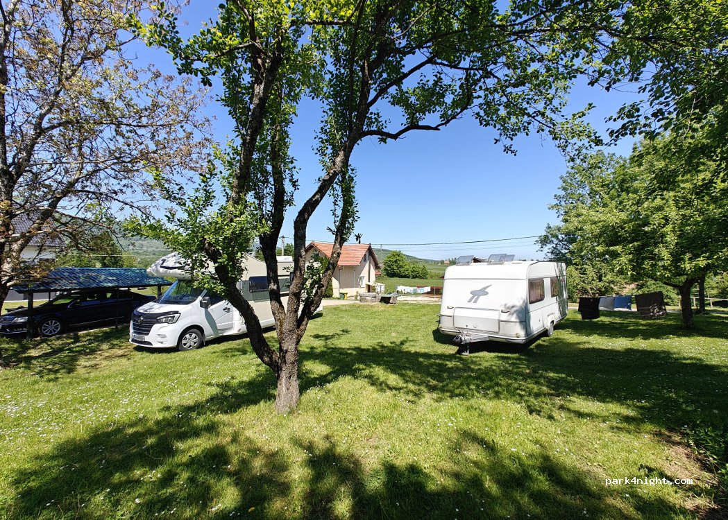 Sehr freundlicher Vermieter, spricht selbst kein Englisch, wird aber von seinem Neffen sehr gut unterstützt. Ein Slivovitz zur Begrüßung, wenn gewünscht. Stehplatz auf grüner Wiese, nicht markiert>> nach Bedarf. Duschen und Küchen zur Benützung vorhanden, sauber und gut ausgestattet. Waschmaschine. Grillplatz und Holz vorhanden. Für ein paar Nächte bestens geeignet. Machen hier gerne wieder Rast.