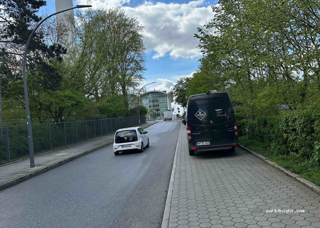 Parking near a huge park, but near the railway tracks. Payable. It does the trick, and there is a spear unlike other car parks.