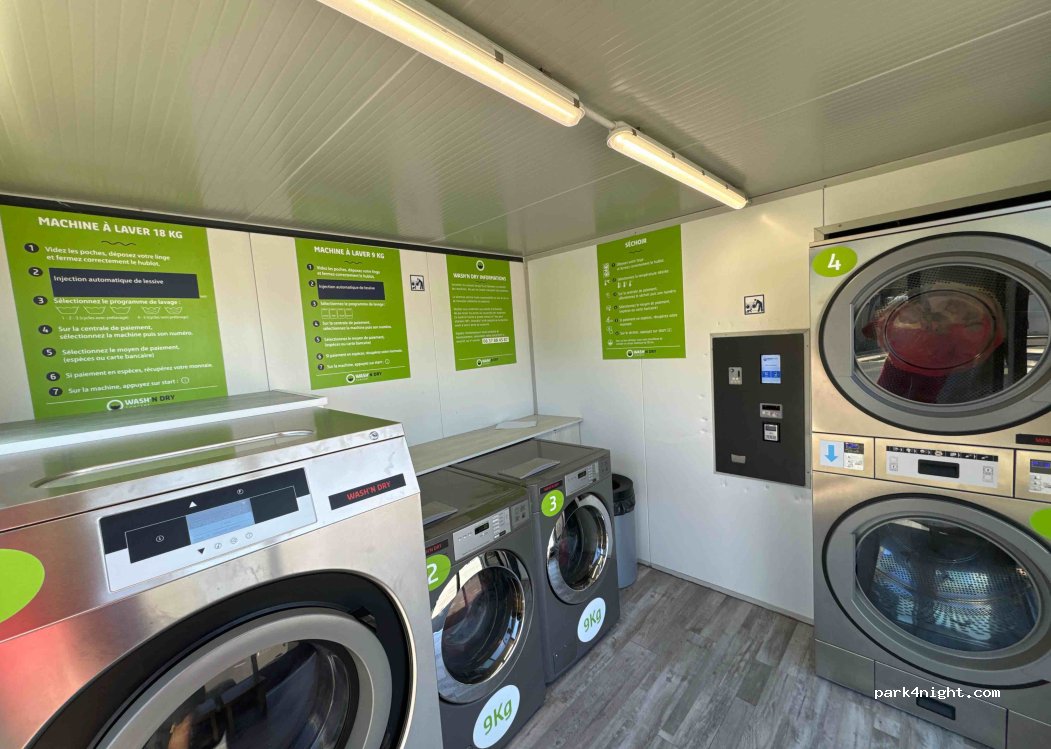 Laverie avec machine 2x9kg et 1x18kg et 2 sèche-linge. Lavage de voiture de 4,10 m de haut AVEC brosse et nettoyant insectes/taons ainsi qu'un centre commercial avec magasin d'alimentation biologique, Aldi, quincaillerie Weldom, magasin de sport et autres. La laverie automatique et le lavage de voiture avec aspirateur peuvent également être payés par carte. La laverie est ouverte tous les jours de 7h à 22h et la station service est ouverte 24h/24 et 7j/7.