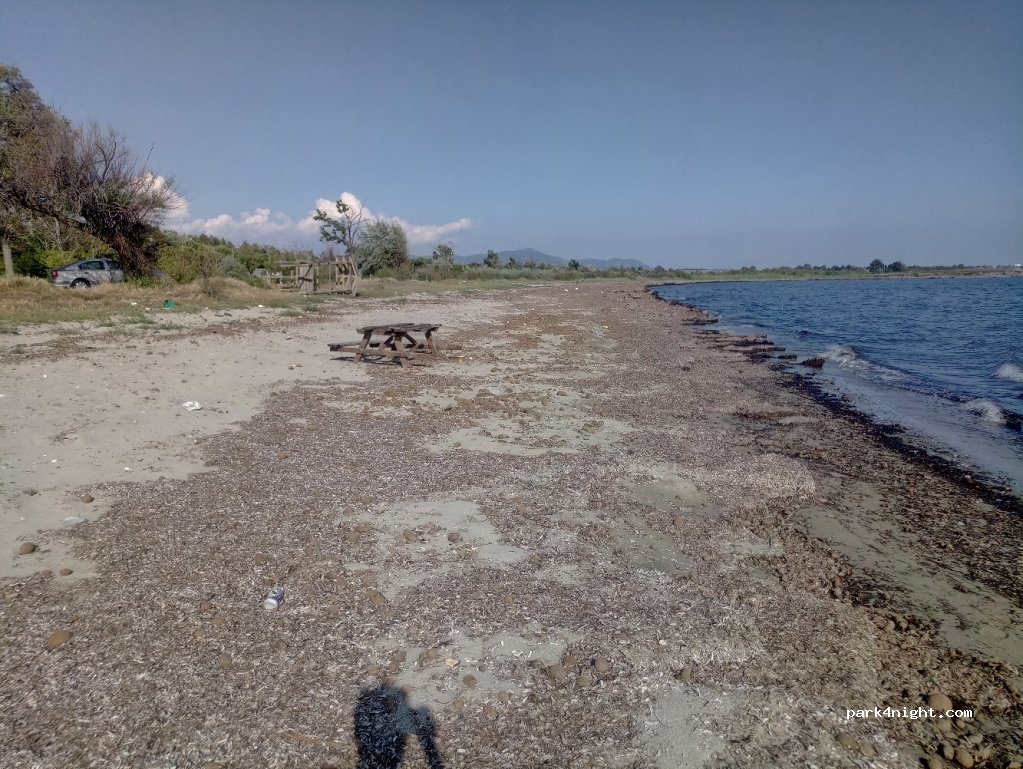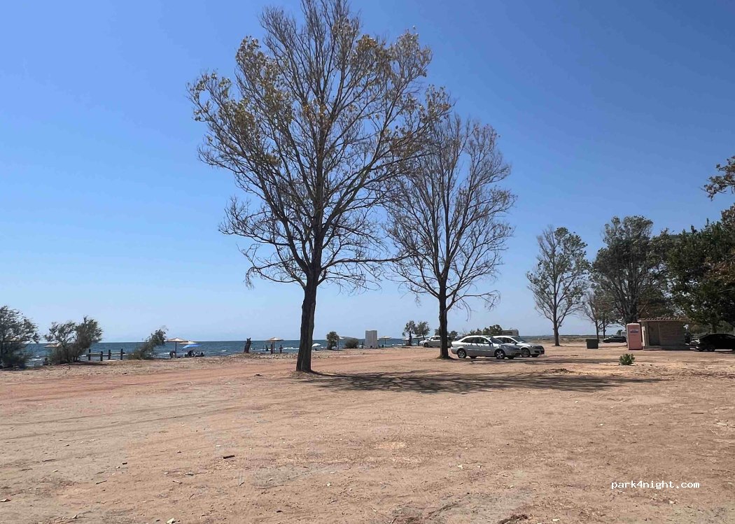 Parking by the sea in the Imeros Beach Park. Fine sand beach.
