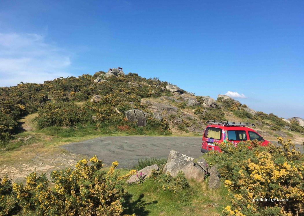 Incredible park4night. Absolutely stunning spot. There is a weight restriction of 3.5T. Very, very steep tarmac road to the top (we’d say 1 in 4). We have low ratio box but would’ve thought twice about attempting in our old motorhome. Worth it when you’re at the top. Hikes from the door with dog off leash. Saw no-one.