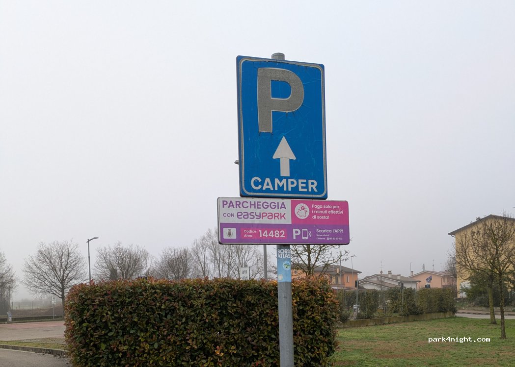 Area sosta completamente gratuita, immersa nella tranquillità e nel silenzio. Ogni piazzola, perfettamente in piano su mattonelle, è dotata di propria presa di corrente e rubinetto acqua. È presente anche lo spazio dedicato allo scarico/carico con colonnina acqua. Area ben illuminata. Comoda anche per la posizione, esattamente a metà tra Bologna e Padova