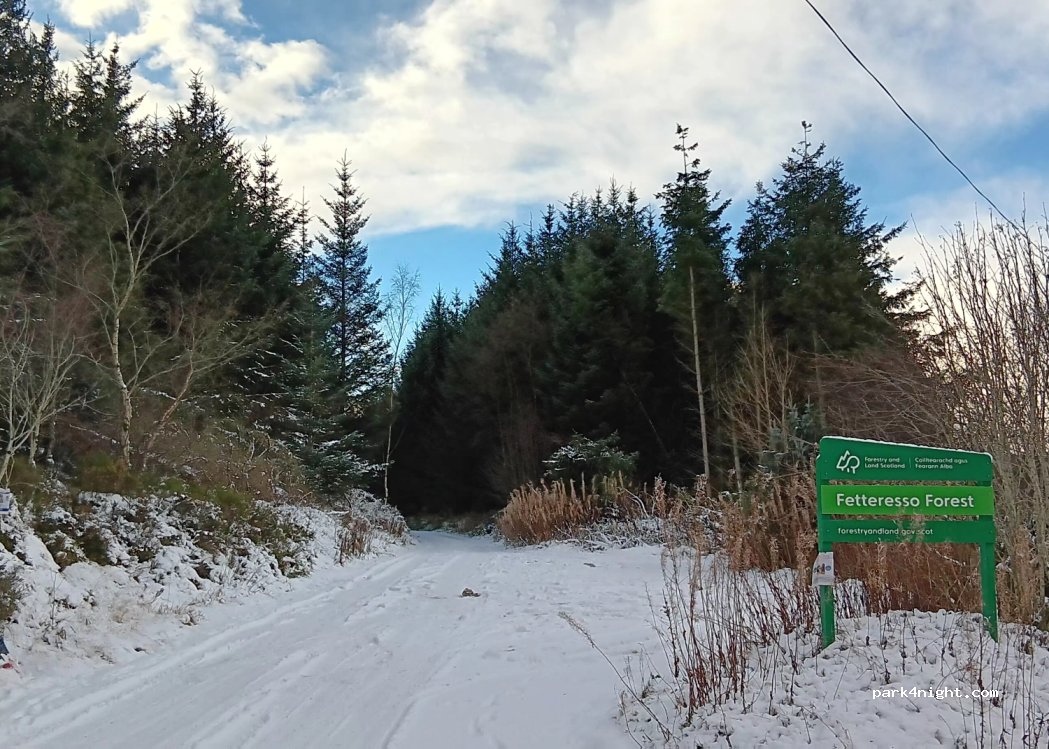 Little car park by the side of a secluded country road. Great for one night on the way to or from Aberdeen
