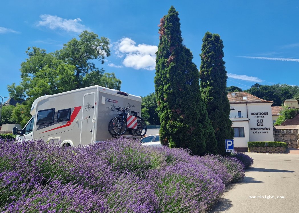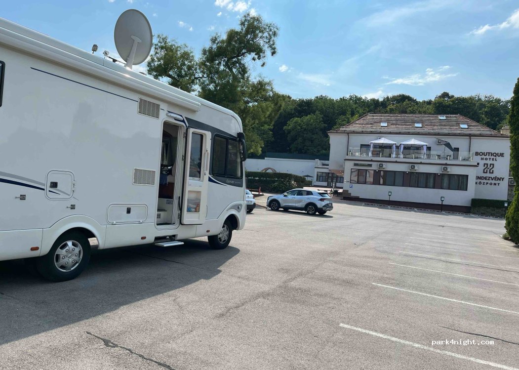 Welcome to 22 Boutique Hotel! We are pleased to inform you that we provide parking for your motorhome in our parking lot. Our maximum capacity is 20 cars. We guarantee a peaceful rest, with a beautiful view and a playground for those arriving with children, and a save parking for your van.