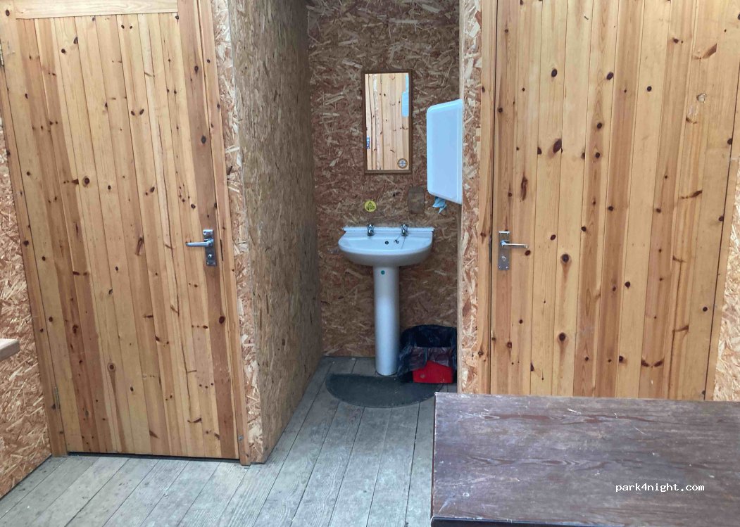 Great site. Excellent price too. Rocked up early without booking but it was okay. Soon the owner came round and I paid my fee £10 per night. There’s a toilet block just next to the field with two cubicles, two working showers and pot washing area. £1 for the shower, the water is hot and plenty long enough for a good wash. There is also a shed next door for chemical dump, clean up and water. A water tap is attached to exit gate.