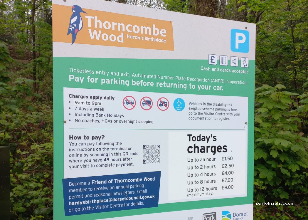 Parkplatz Thorncombe Wood, für Zugang zu Waldspaziergängen und dem Thomas Hardy Cottage (freitags und sonntags geschlossen) und dem Besucherzentrum.
