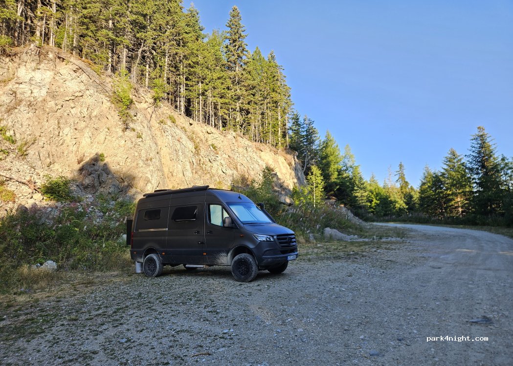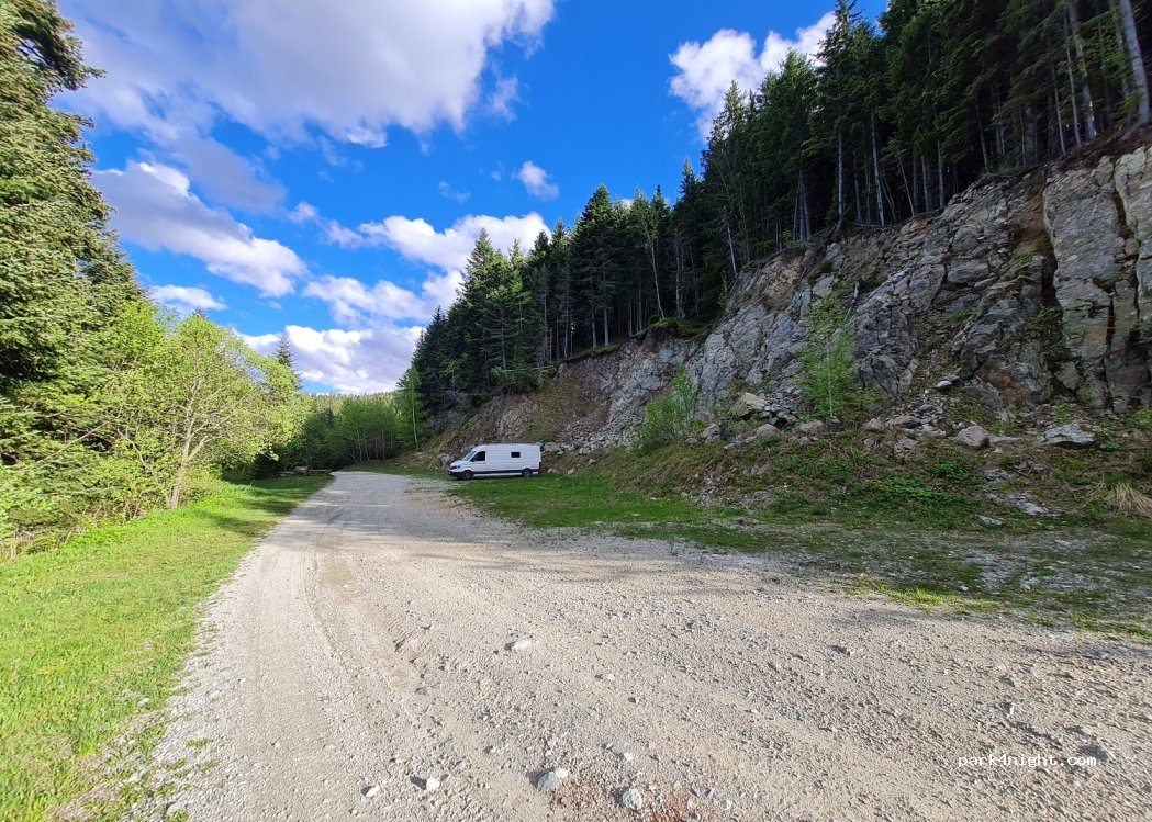 Great place to stay after hiking. Quiet, few cars drive through .A lot of space, we found a leveled one. It is possible to reach and leave when wet.