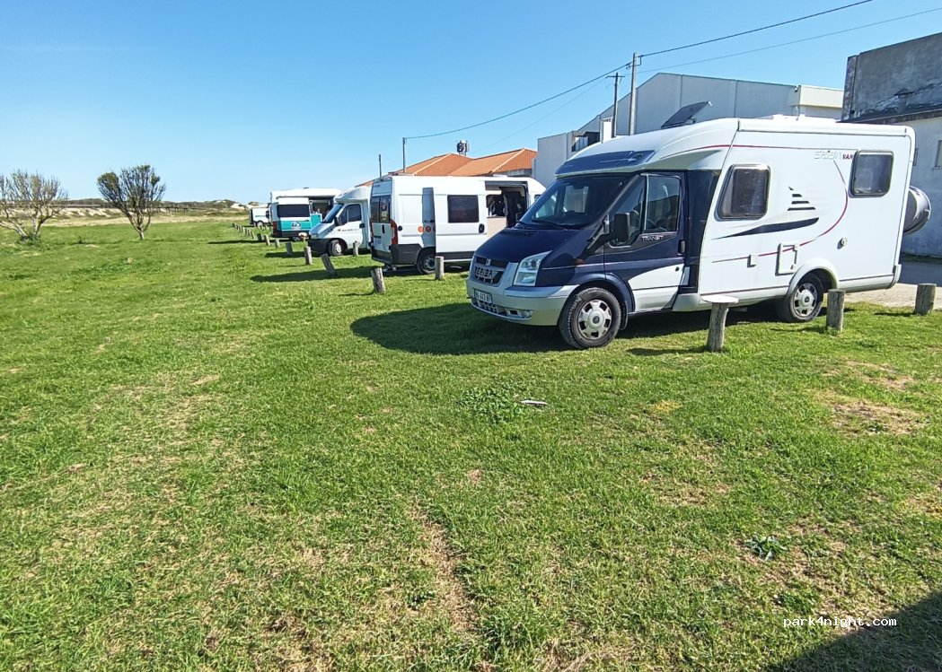 Très bel endroit pour seulement 3 € la nuit , place sur pelouse , étroite mais délimité et possible de mettre une table e chaises . Recharge d eau possible mais 2€ pour 50l , aire situé derrière les dunes d’une superbe plage , et a quelques mètres des commerces et restaurants , très bel endroit ! 45 mn en vélo de Aveiro , pistes cyclable tout le long ! Au top