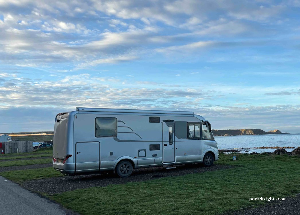 Stayed 1 night, mainly for access to water/emptying but also to enjoy the fabulous sea view. Just a short walk into town, famous for its Cullen Skink £15 was reasonable for the stay.