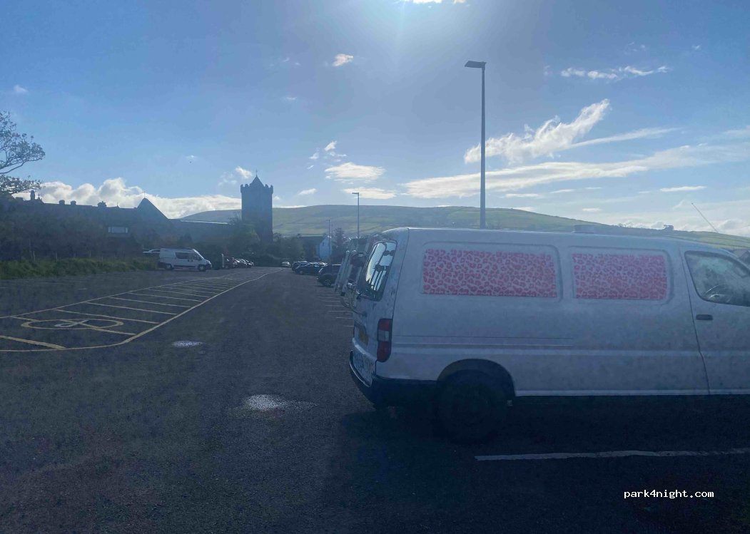 Large free carpark. It is busy during the summer and at weekends. Street into and out of the carpark is narrow especially if cars are parked badly. Unfortunately No Overnight Parking signs have been erected recently.