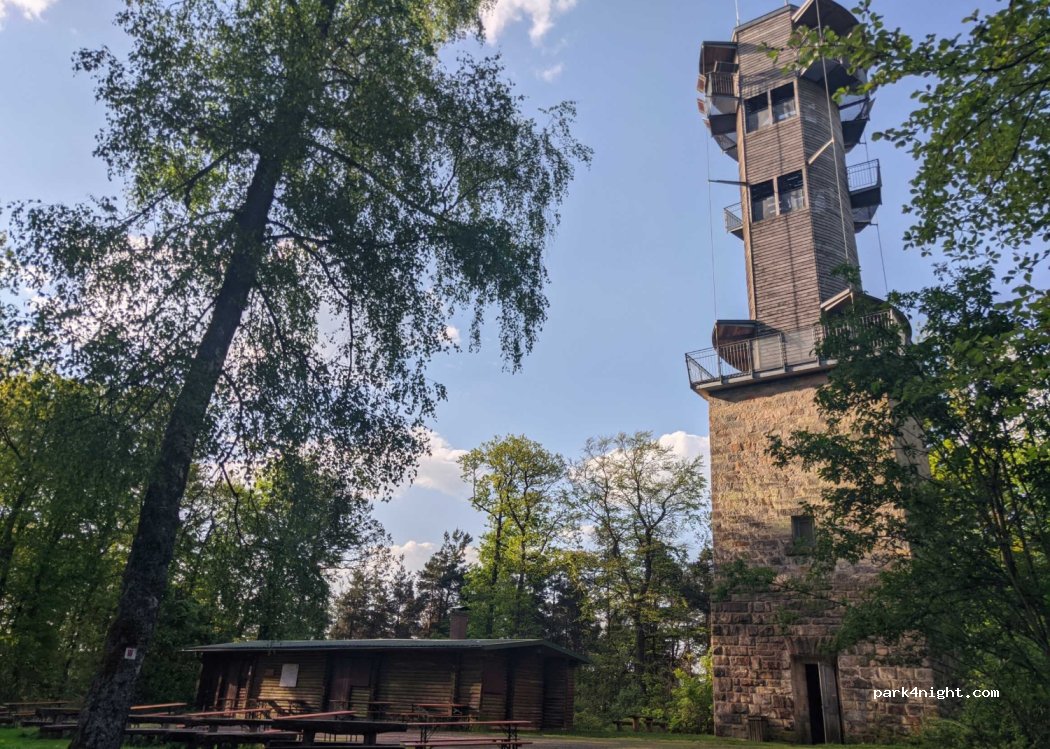 Large parking lot for hikers in the middle of the forest on the back of the Haßberge. Seating area available. Short walk (5-10 minutes) to the Schwedenschanze with observation tower and hut (limited opening hours). Not suitable for large vehicles.
