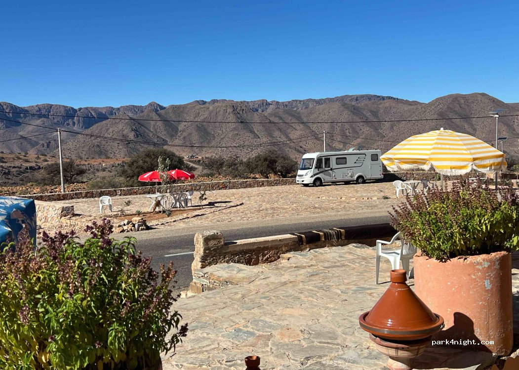 Magnificent and quiet place, parking with panoramic view, just opposite the café du moulin, Brahim, the owner, will be happy to show you around Agadir which is just above, in the village (he has the key) Possibility to spend the night in this pretty, well-appointed car park and to eat or have tea at Brahim’s. We spent 1 very relaxing night there.