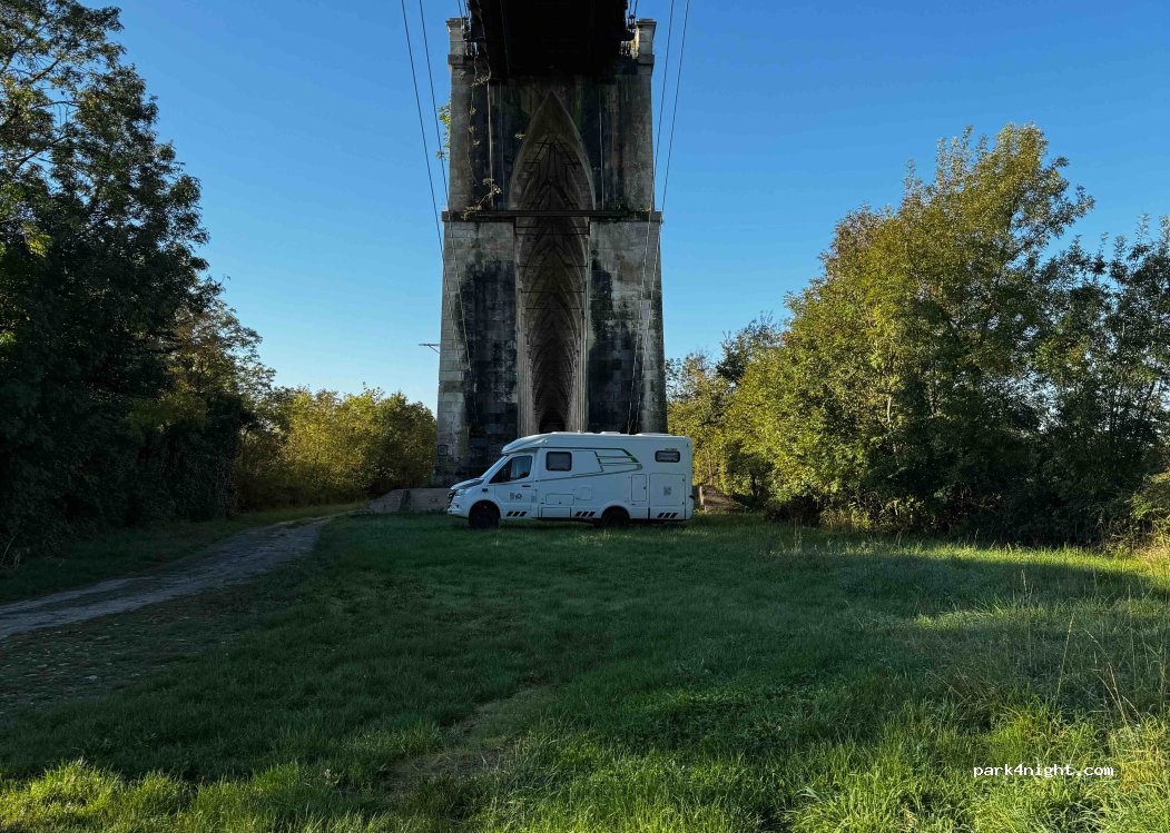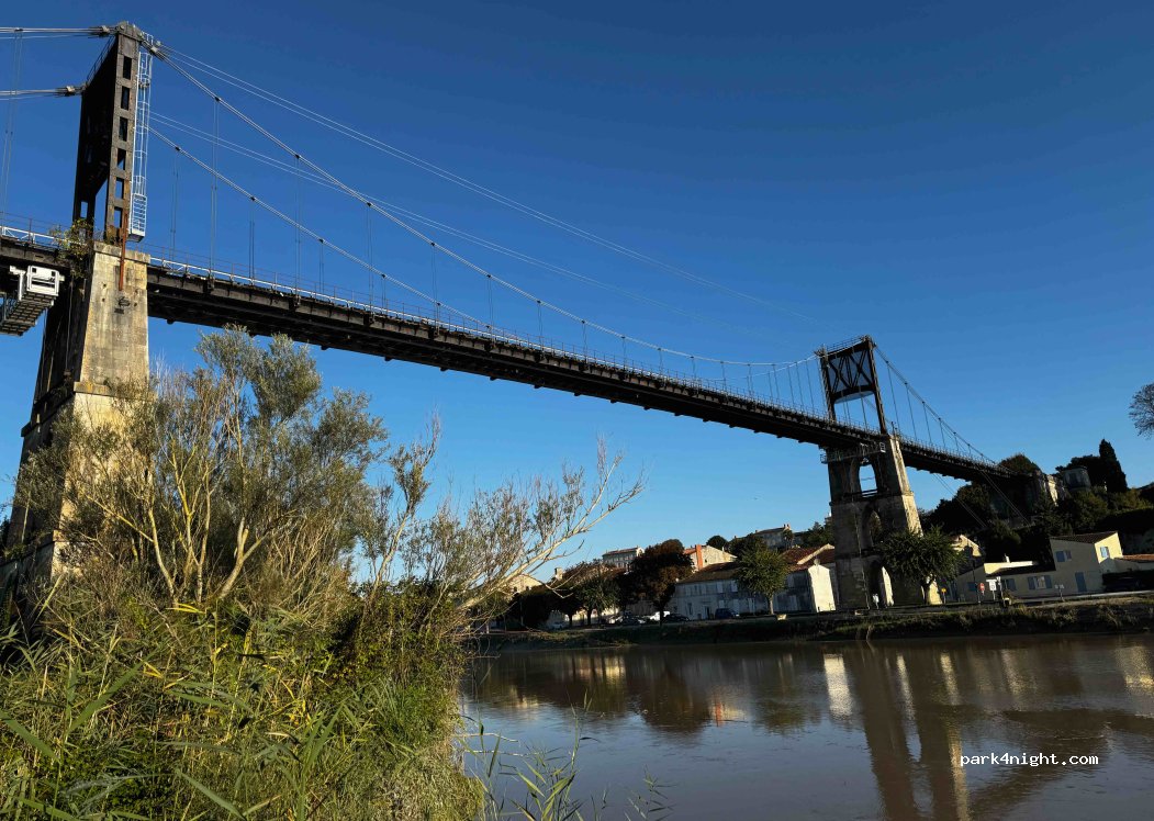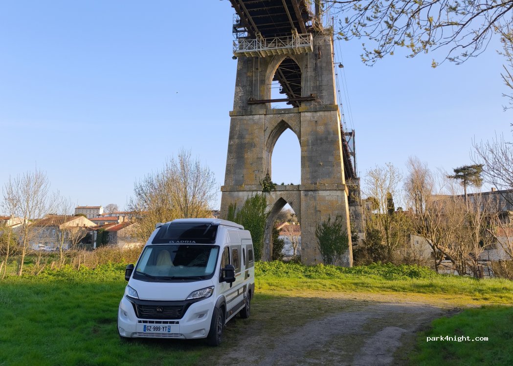 Sehr schöner ruhiger Platz. Man kann zu Fuß über die Brücke nach Tonnay-Charente laufen. Etwa eine halbe Stunde. Der Platz ist eben aber nach dem Regen teilweise etwa matschig. Die Brückenbögen sind magisch.