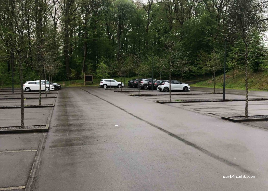 Mooie ruime parkeerplaats. Voelt veilig en rustig. Naast een parcours, mountainbikepaden, voetbalvelden en indoorfitness. Het voelt als een heel rustige plek. Geen verbodsborden.