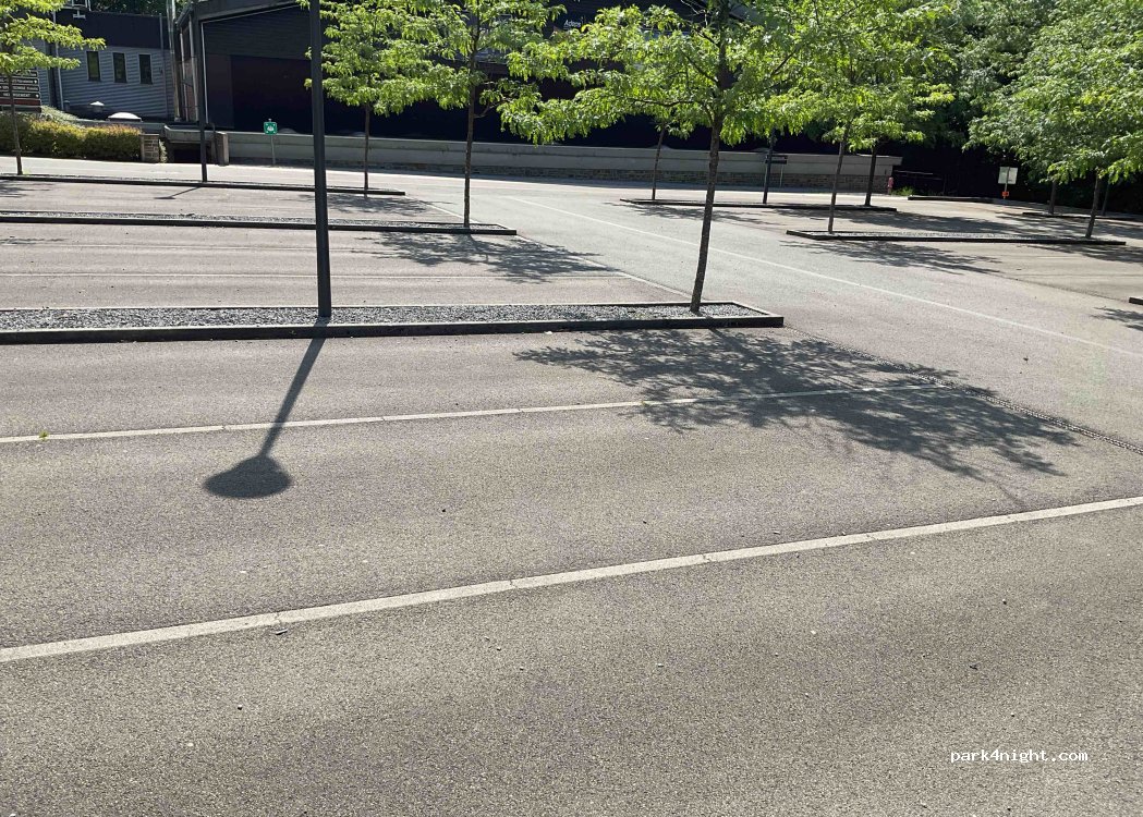 Schöner, geräumiger Parkplatz. Fühlt sich sicher und ruhig an. Neben einer Rennstrecke, Mountainbike-Strecken, Fußballfeldern und einem Indoor-Fitnessstudio. Es fühlt sich wie ein sehr ruhiger Ort an. Keine Verbotsschilder.