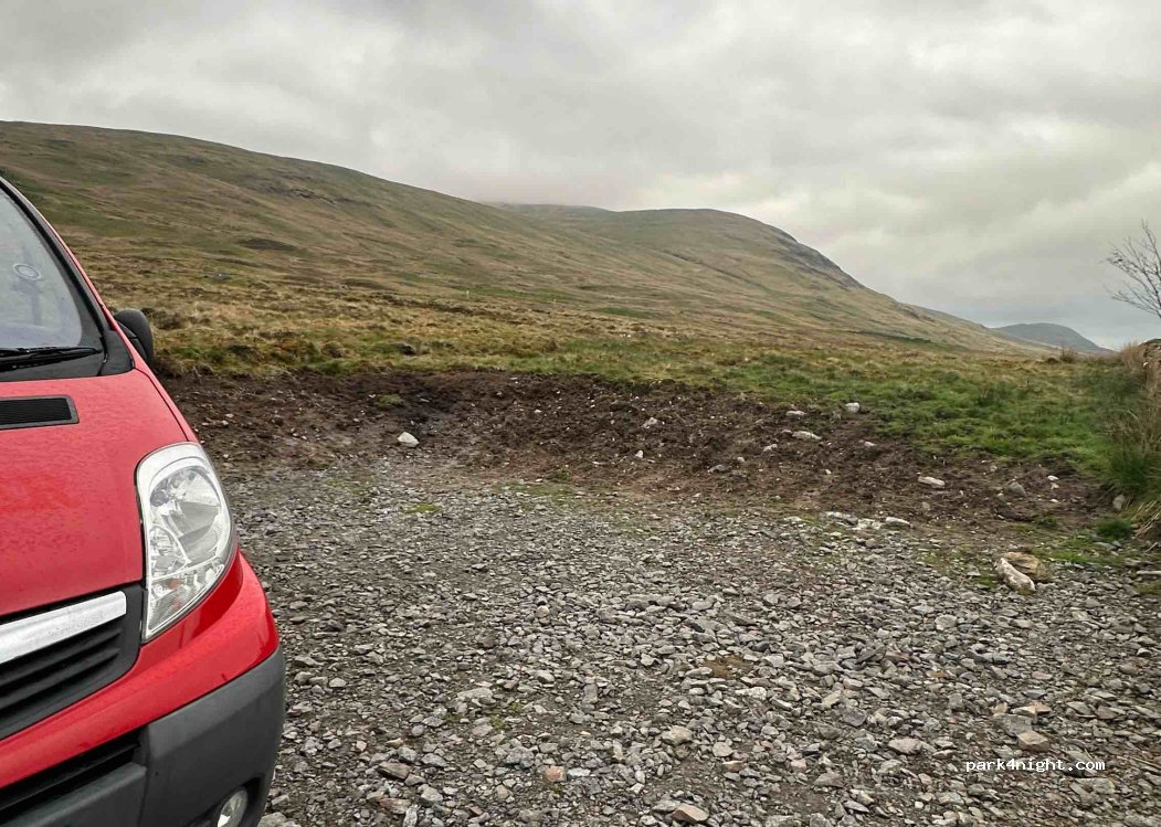 Wunderschöner Ort in der Nähe von Loch Tay. Mitten in den Bergen, im Ben Lawers National Nature Reserve. Atemberaubende Aussichten rundherum. Keine Einrichtungen, aber sehr privat, da kilometerweit niemand da ist, abgesehen von dem gelegentlich vorbeifahrenden Auto. Die Polizei ist zweimal an uns vorbeigefahren und hat nicht einmal abgebremst, also definitiv in Ordnung, dort über Nacht zu parken. Eigentlich nur für 1-2 Camper geeignet, obwohl es auf der anderen Straßenseite ein Stück Erde gibt, auf dem ein zusätzlicher Van Platz hätte. NICHT für Wohnmobile geeignet, da die Bergpassstraßen sehr klein sind (es gibt Schilder am Eingang zum Pass)