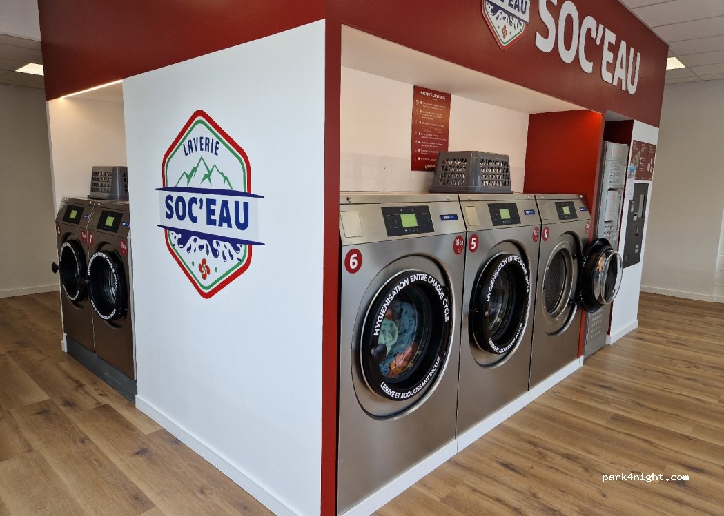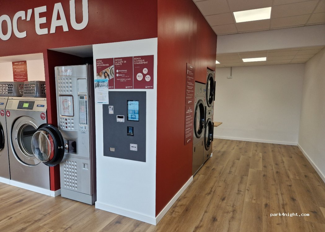 laverie super fonctionnelle tout est neuf avec espace détente et Wi-Fi gratuit on peut se garer aisément surtout le week-end le parking briconaute pour la nuit , la propriétaire très charmante et agréable passe tout les jours régulièrement et disponible rapidement si besoin . Relay pick up pour vos commandes internet...je recommande ! bonne clientèle de camping cariste fidèle au lieu .
