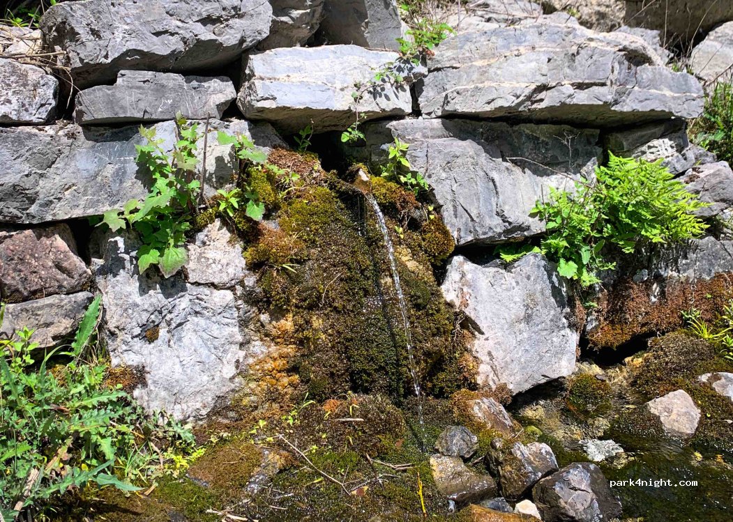 Trinkwasserquelle, ideal zum Befüllen von Flaschen. Es ist nicht möglich, einen Schlauch anzuschließen.